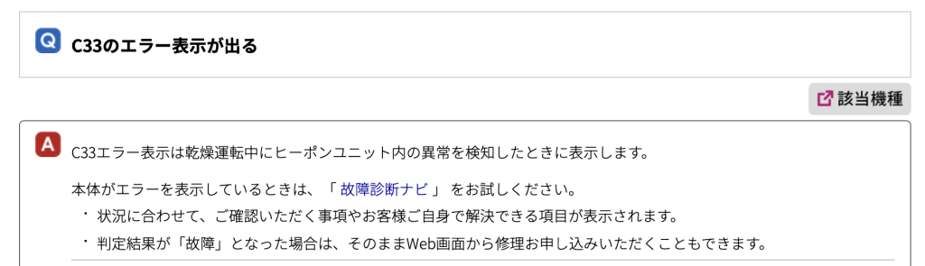 C33エラーについて調べるとシャープの公式サイトにはこのように書かれています。