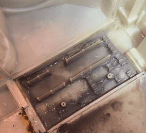 ドレンポンプの交換だけでなくヒートポンプの清掃作業も同時に行うのは、ヒートポンプが汚れているとドラムの中を通った温風が適切に除湿されず乾燥時間が長くなる原因となるためです。