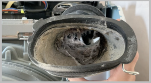 乾燥経路に埃が詰まった状態がこのまま進行すると、最終的には洗濯機内を適切に温かい風が回らなくなるため、乾燥機能を利用しても「乾燥に時間がかかる」「湿っている」などの問題が起きる可能性が高くなります。